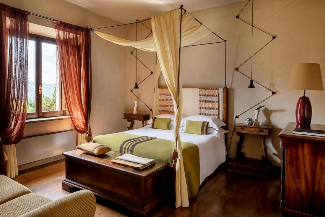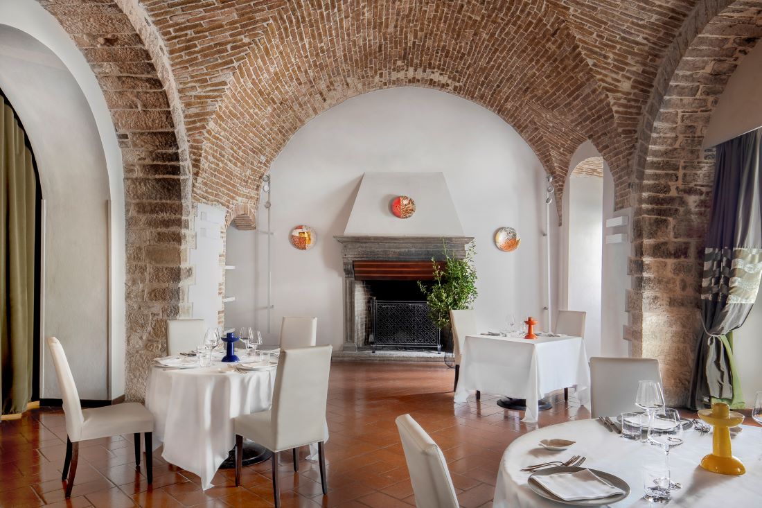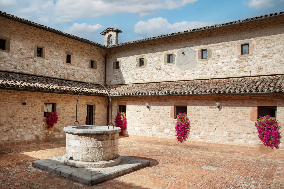 The Park Hotel Ai Cappuccini is a carefully renovated seventeenth century monastery. The splendid building and the religious communities which built it and lived within it are all closely linked to the history of Gubbio. Gubbio is considered part of the heart of Umbria, a pure gem immersed in the countryside. Its stones and architecture are among the most important, refined and cultured medieval findings. Secluded yet very close to the center of the city, the Park Hotel Ai Cappuccini today fuses antique ambiance with modern comforts in a happy balanced combination. Its interior is characterized by large meeting and social spaces, relaxing areas from warm conversations in front of the fireplace and precious tapestries, frescoes and epoch paintings together with contemporary works of art by some of the most important Italian artists: Capogrossi, Arnaldo Pomodoro, Abbozzo… New and old melded together in a marvelous stylistic balance. The rooms, some of them set in enchanting antique part of the old monastery and some located in the new extension, consist of exclusive junior suite and suites and are equipped with modern conveniences and furnished with a careful eye. Guest to the hospitable restaurant can taste traditional Gubbio and Umbrian dishes as well as some quality national and international cooking. The impeccable service and warm hospitality add to the precious, enchanting atmosphere.