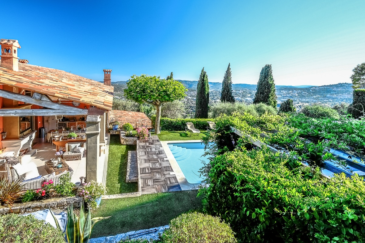 Villa French Riviera 02 is a large 18th century villa in the Grasse region. The property offers spectacular panoramic sea and mountain views and provides tranquility away from the busy coastal regions. Hedges and stone walls open to orchards and pergola-covered lounges. Taste the olive oil pressed from the estate’s trees, float in the pool, and smell your way to the jasmine and rose festivals in Grasse 2.5 miles away. There are also fig and orange trees where home made jam, chutney and marmalade are made. This home away from home is within easy reach of all the main points of interest in the region such as Nice, Monaco, Cannes, Antibes.